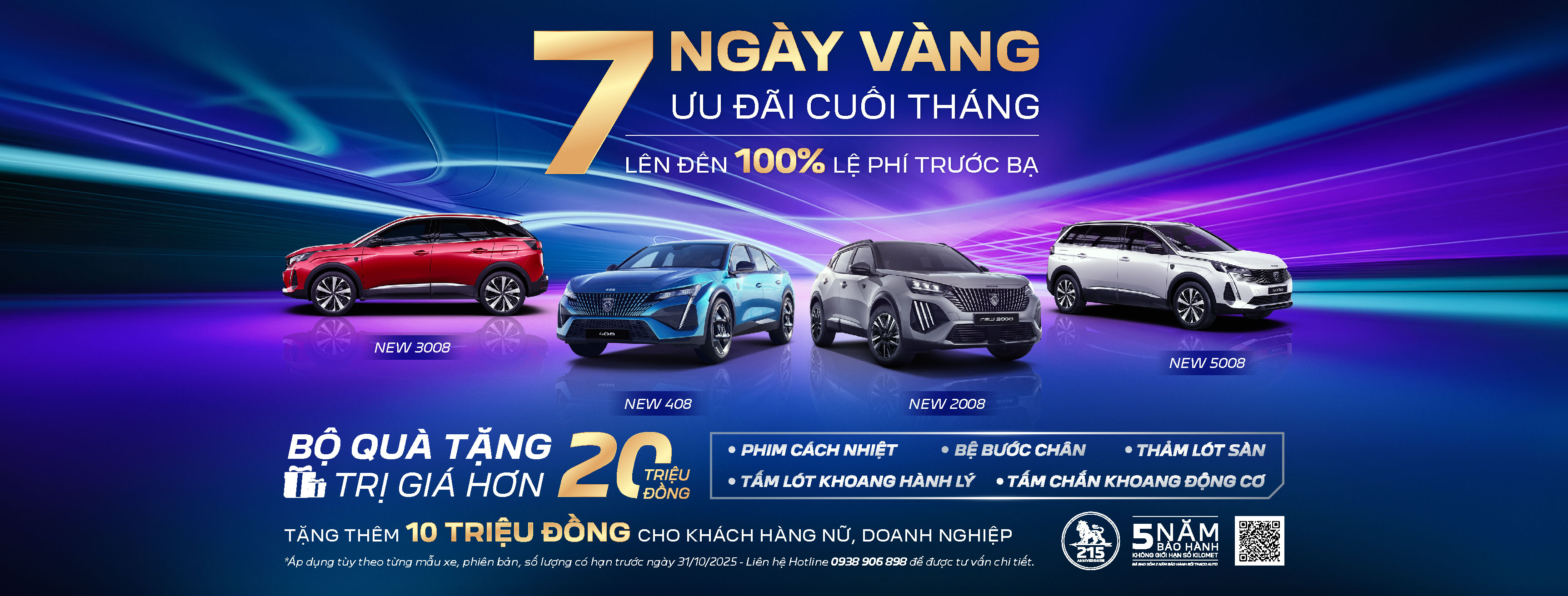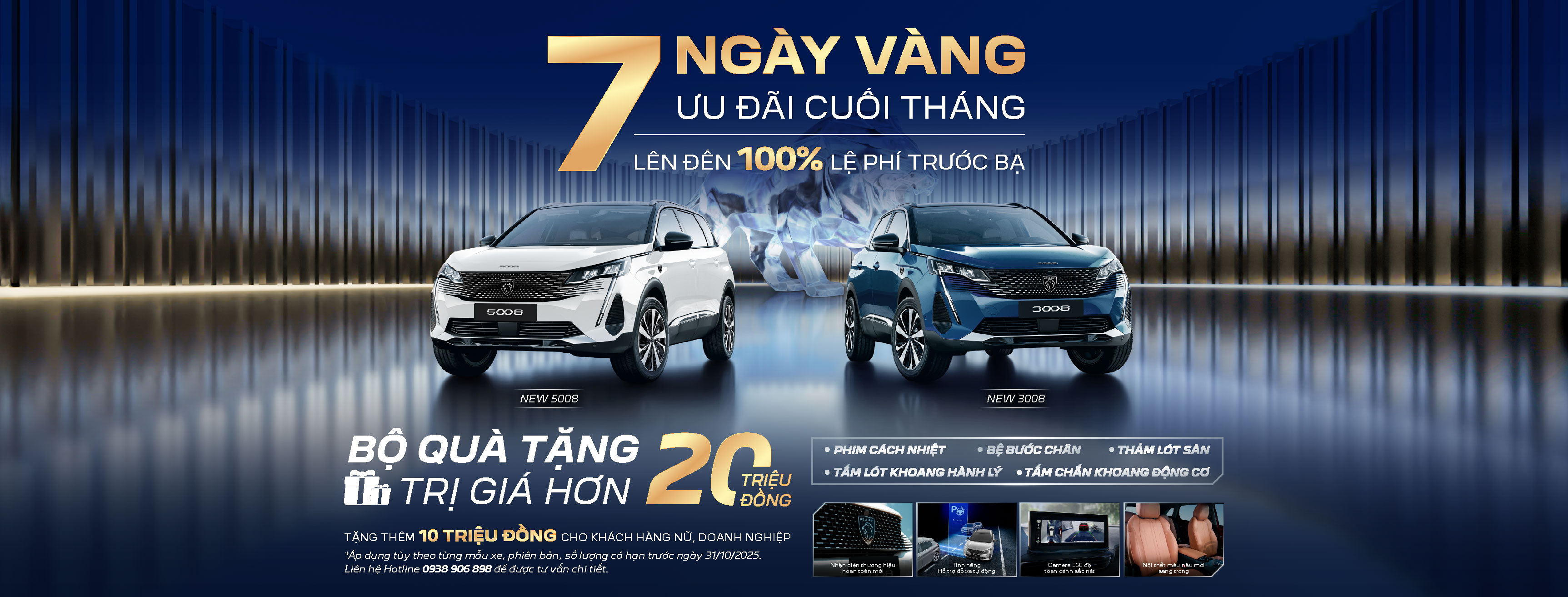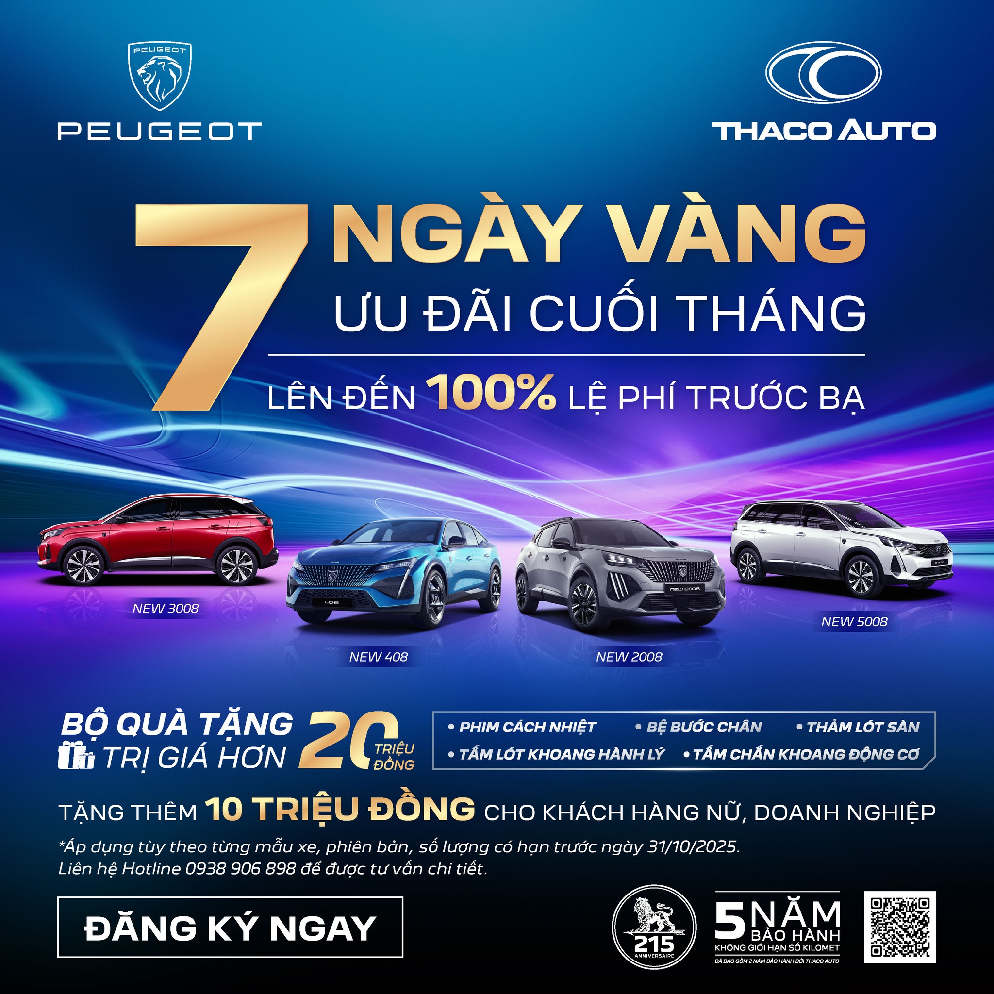 Từ 23/10 – 31/10, Peugeot mang đến tuần lễ ưu đãi đặc biệt - cơ hội để khách hàng dễ dàng sở hữu những mẫu xe châu Âu cao cấp cùng quyền lợi hấp dẫn.